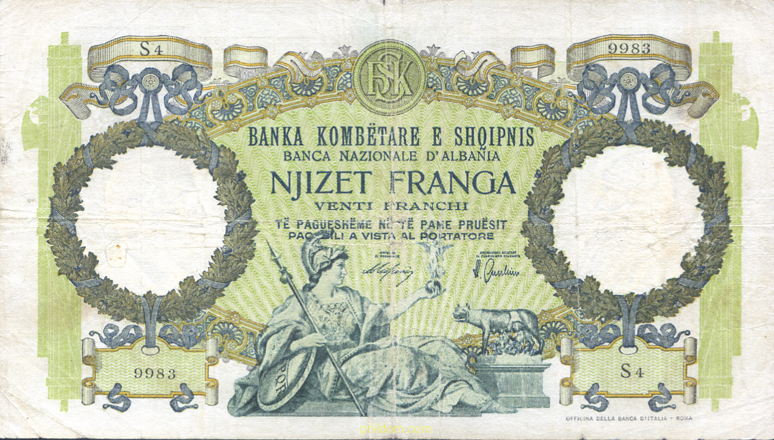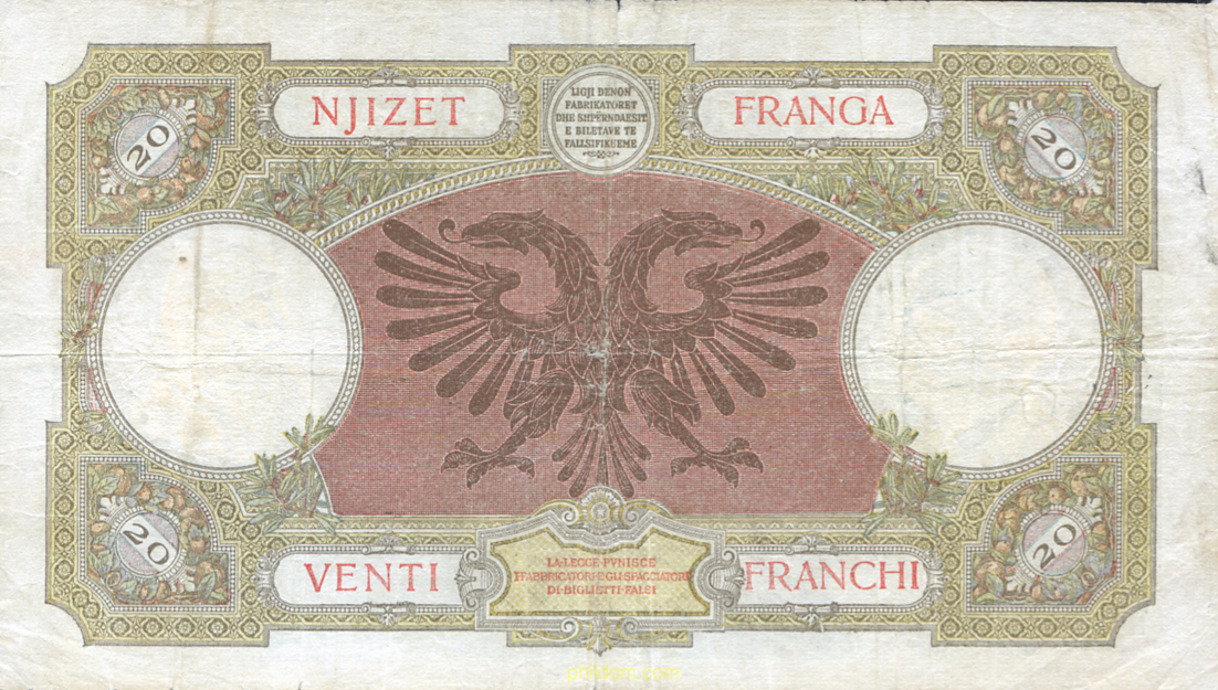 ALBANIA SHQIPERISE 20 FRANCHI 1939