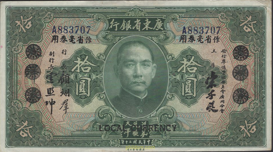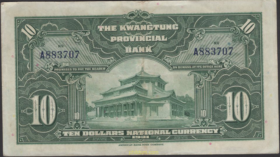 CHINA 10 KWANGTUNG PROVINCIAL BANK 1931