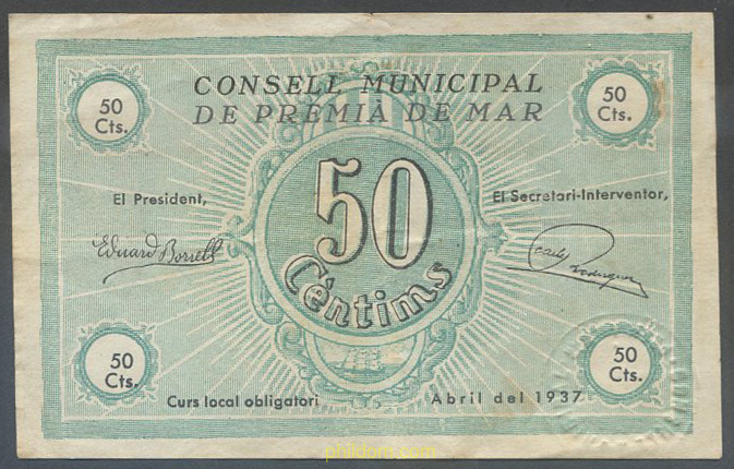 CONSELL MUNICIPAL DE PREMIA DE MAR 50 CENTIMS 1937