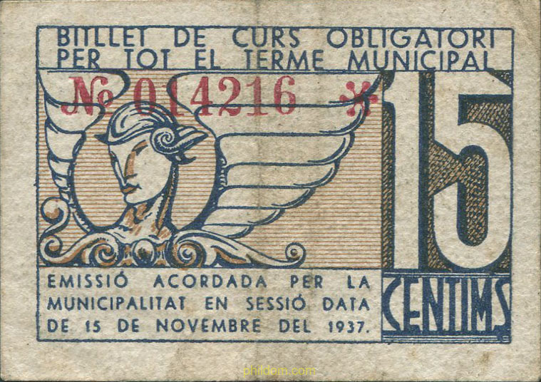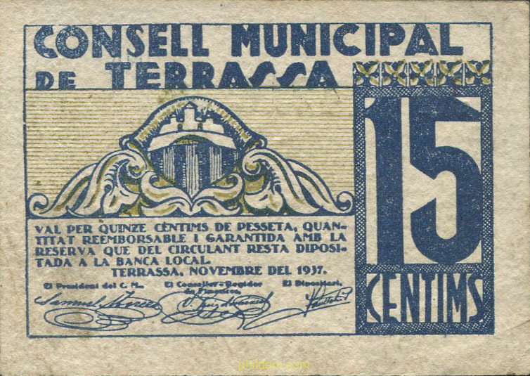 CONSELL MUNICIPAL DE TERRASSA 15 CENTIMOS 1937