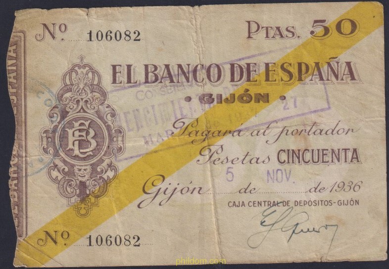 BANCO ESPAÑA GIJON 50 PESETAS 1936