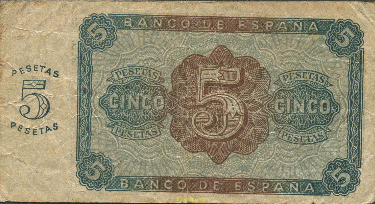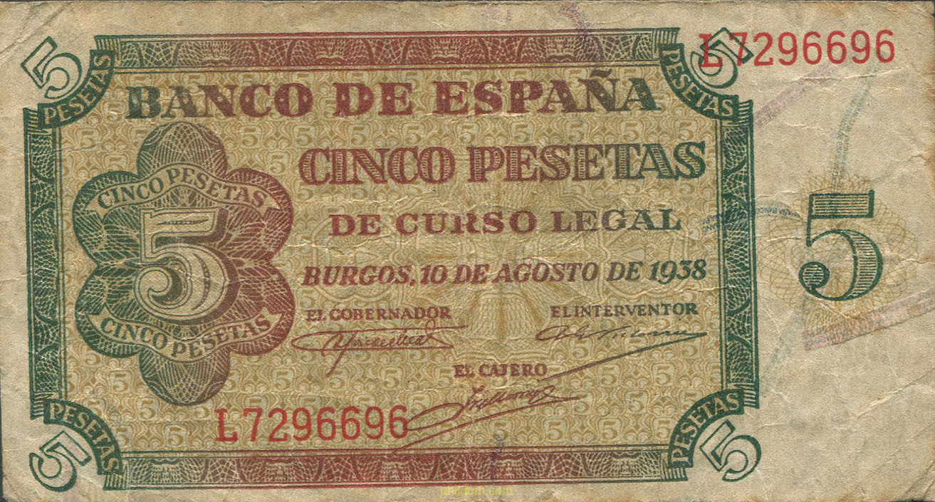 5 Pesetas Estado español Burgos 10 de agosto de 1938