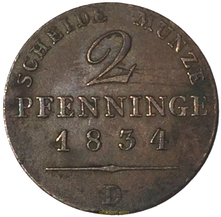 GERMAN 2 PFENNINGE 1834 ALEMANIA