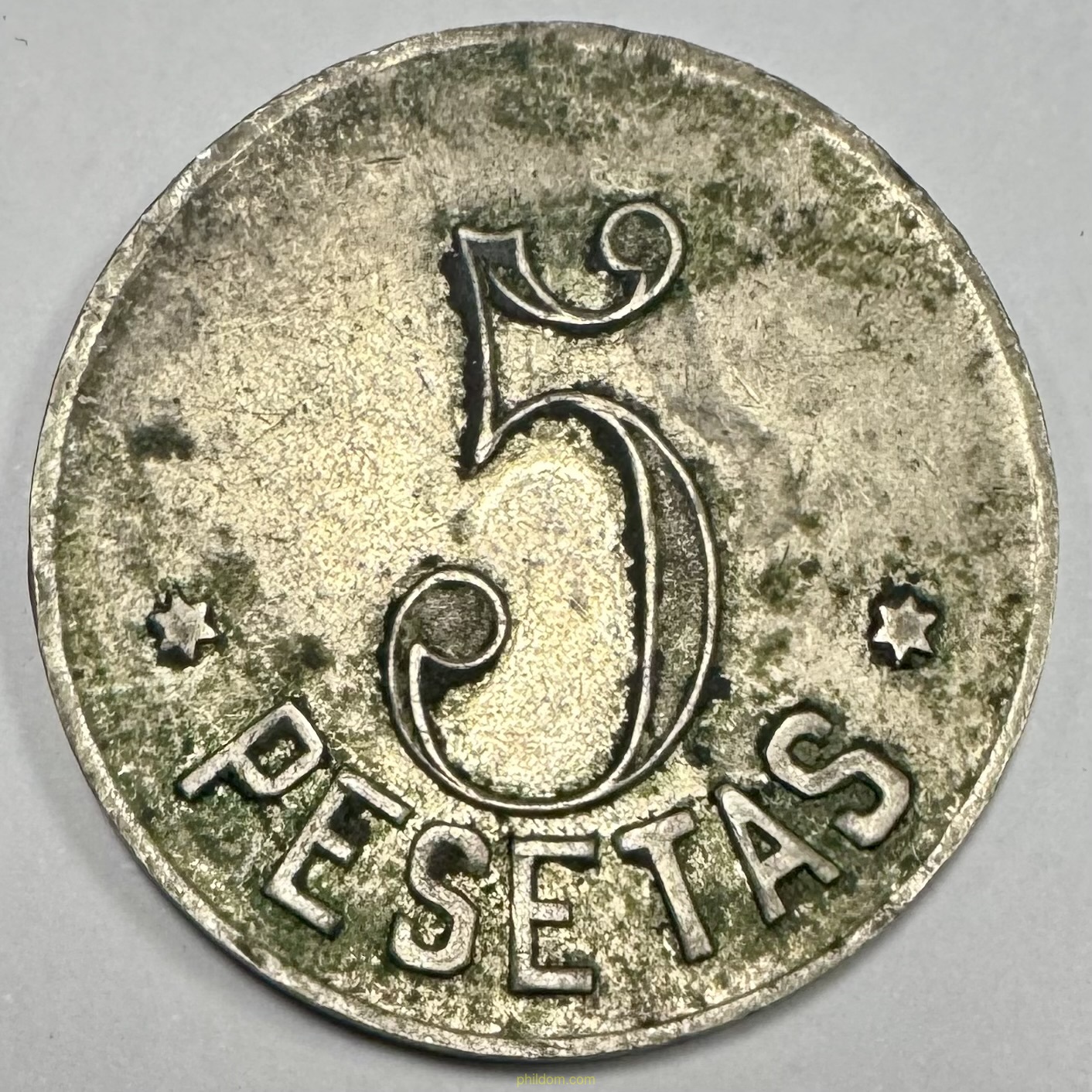 FICHA COOPERATIVA LA CONSTANCIA SAGRERENSE 5 PESETAS