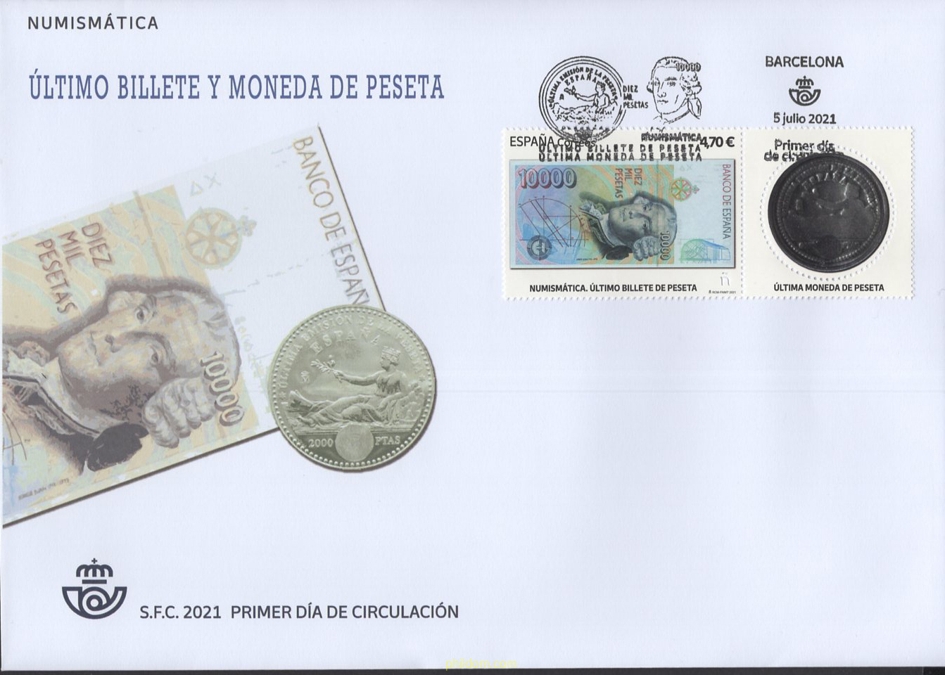 NUMISMÁTICA. ÚLTIMO BILLETE Y MONEDA DE PESETA.